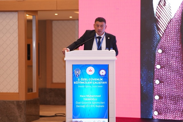 Özel güvenlik eğitim sektörünün güçlenmesi, mesleki yeterliliğin artırılması ve eğitim kurumlarının kurumsal yapısının desteklenmesi için çalıştıklarını belirten Hace Muhammed Tırımoğlu, “Çalıştayda öncelikli gündemimiz, İçişleri Bakanlığı bünyesinde ‘Özel Güvenlik Hizmetleri Genel Müdürlüğü’ kurulmasına yönelik talebimizdi. Böyle bir yapı, iş süreçlerinin daha şeffaf, hızlı ve koordineli yürütülmesini sağlayacaktır. Dünyada artan güvenlik tehditleri, özel güvenliğin yalnızca tamamlayıcı değil, stratejik bir sektör haline gelmesini zorunlu kılıyor. Terör, organize suçlar, kitlesel etkinlikler, siber saldırılar ve kritik altyapıların korunması gibi genişleyen sorumluluk alanları, sektörün yönetimsel ve yapısal açıdan yeniden ele alınmasını gerektiriyor. Türkiye, 400 bine yaklaşan görevliyle güçlü bir kapasiteye sahip. Bu kapasitenin eğitim, planlama, istihdam, dijitalleşme ve kamu-özel işbirliği alanlarında daha etkin kullanılabilmesi için bütüncül bir yapılanmaya ihtiyaç var. Genel müdürlük modeli, yalnızca bürokratik bir değişiklik değil, özel güvenlik hizmetlerinin daha entegre, verimli ve kurumsal şekilde yürütülmesini sağlayacak önemli bir adım olacaktır” şeklinde konuştu.